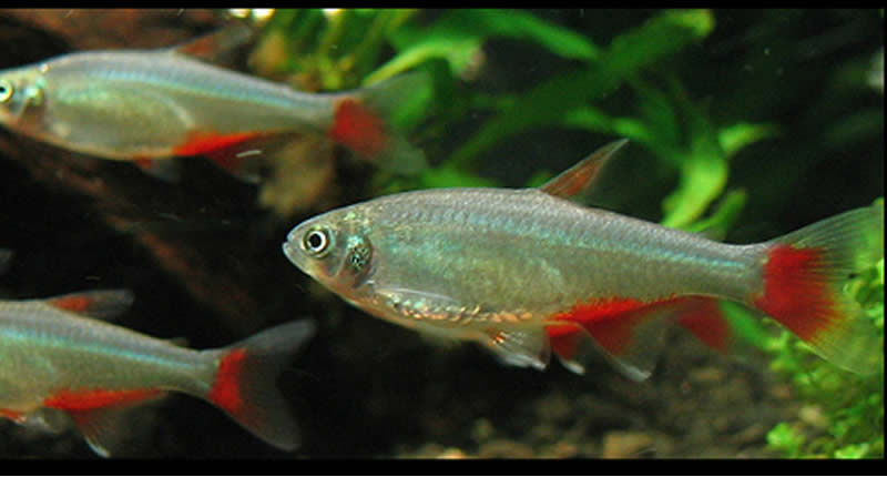 El Hyphessobrycon erythrostigma muestra sus mejores colores en un acuario bien plantado, con un sustrato oscuro y agua suave y clara.