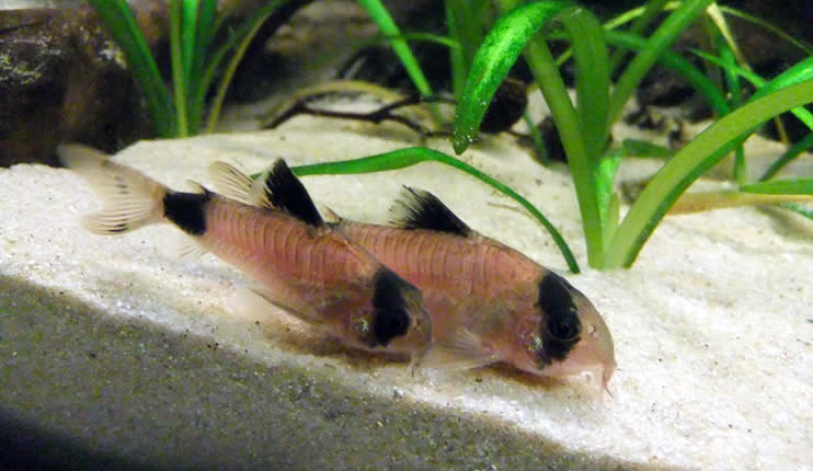 Una Corydoras muy común en el comercio de acuarios es la Cory Panda. Debe su nombre a su característico cuerpo blanco con marcas negras. La calidad del agua es crucial para la salud de las Corydoras y deben tener muchos escondites. Los Cory Panda son nocturnos, por lo que a menudo sólo se ven al anochecer.