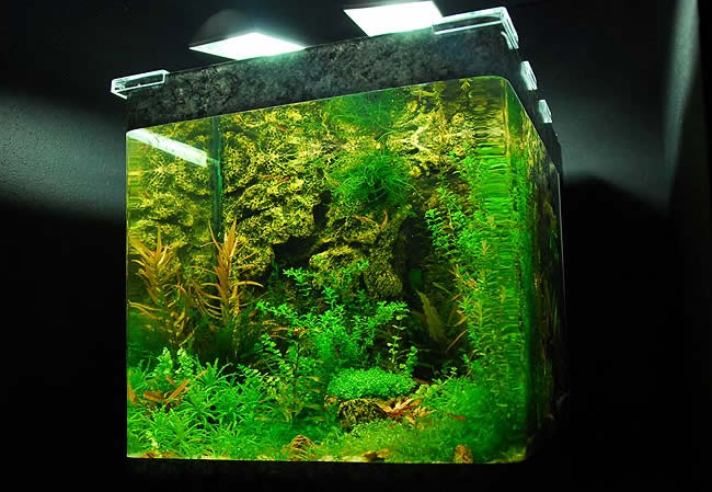 El tamaño del acuario es óptimo para mantener gambas enanas en el acuario. También como un pequeño aquascaping.